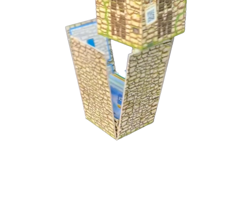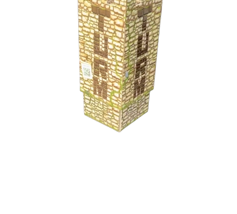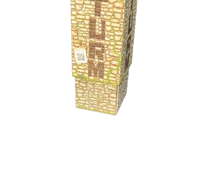 Einzigartige Verpackung: Die innovative Turm-Verpackung entfaltet sich in Sekundenschnelle zu einem stabilen Spielfeld mit einem zentralen Fach für die Goldnuggets.